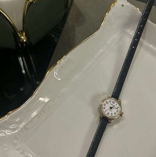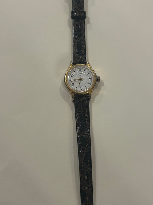 Q&Q Petite Gold-Tone Manual Watch with Black Croc Strap (80s/90s)