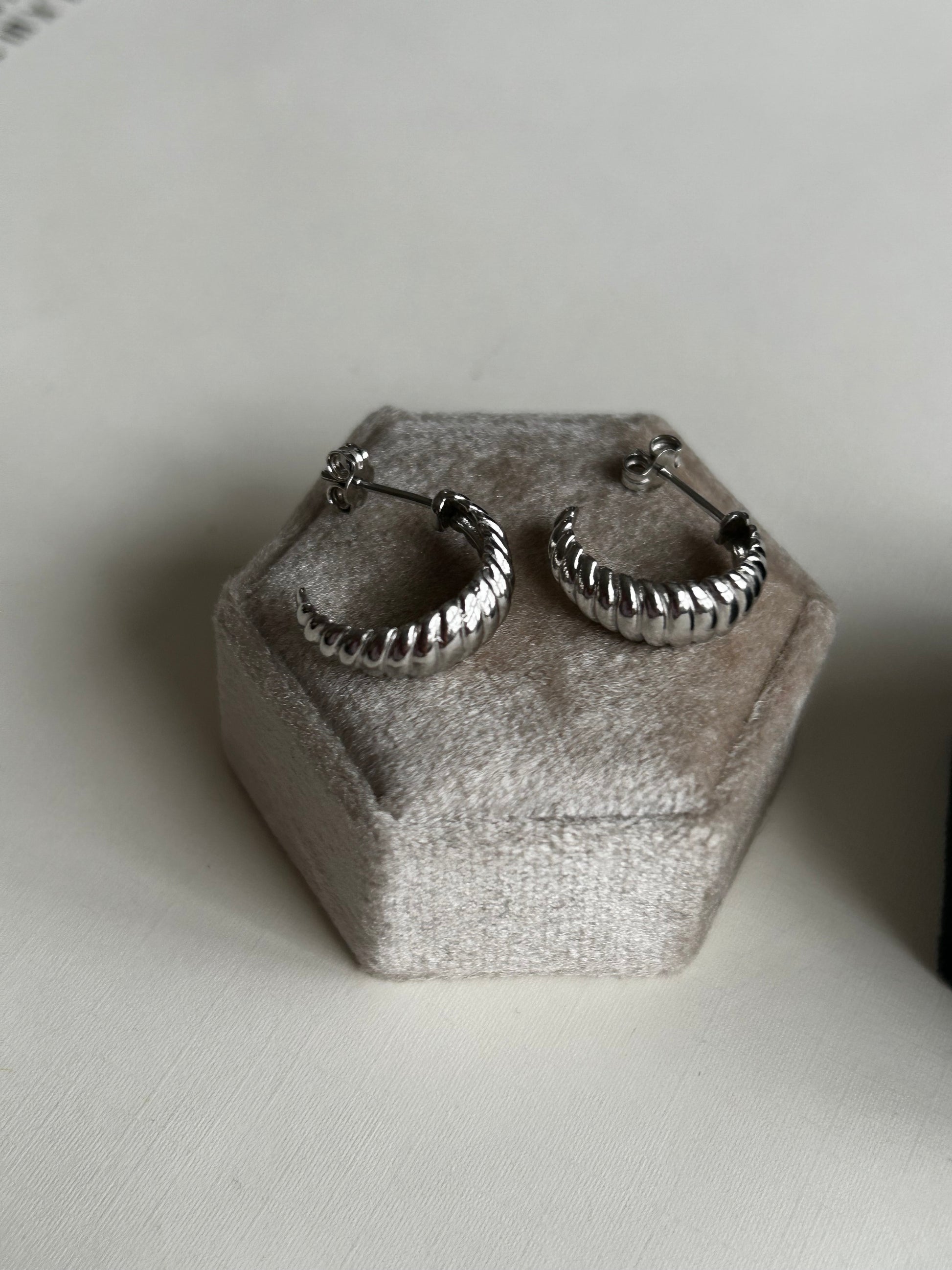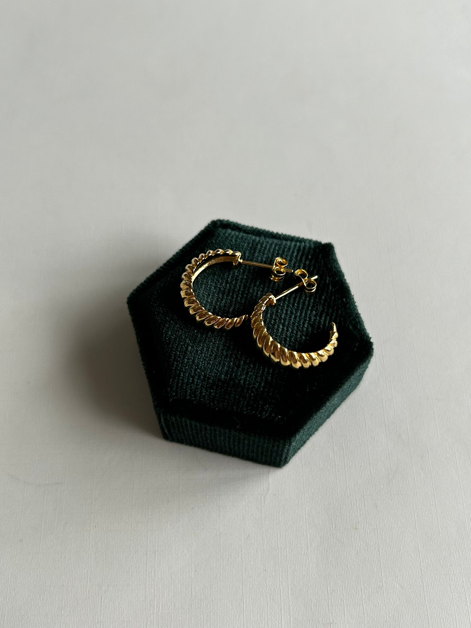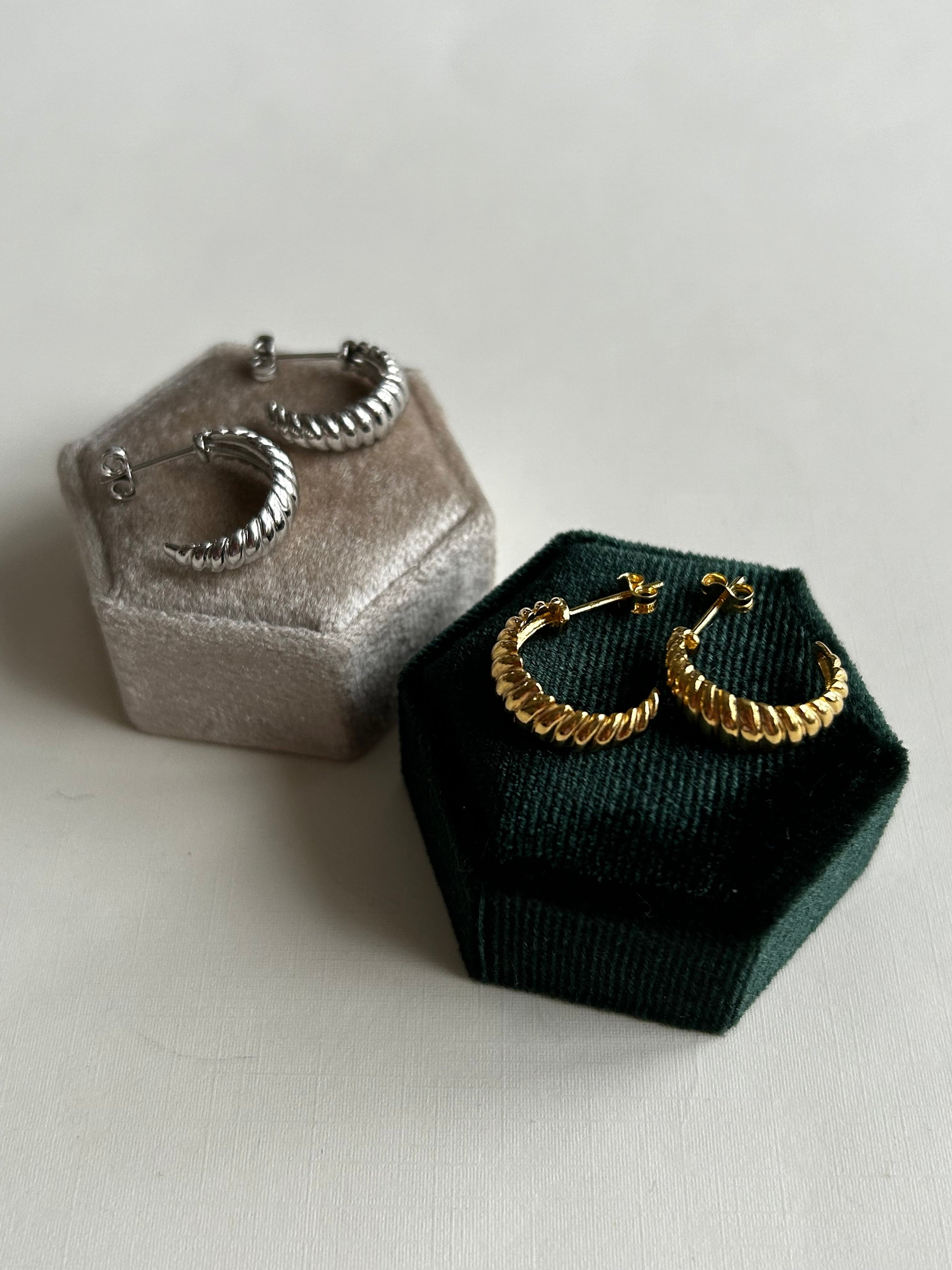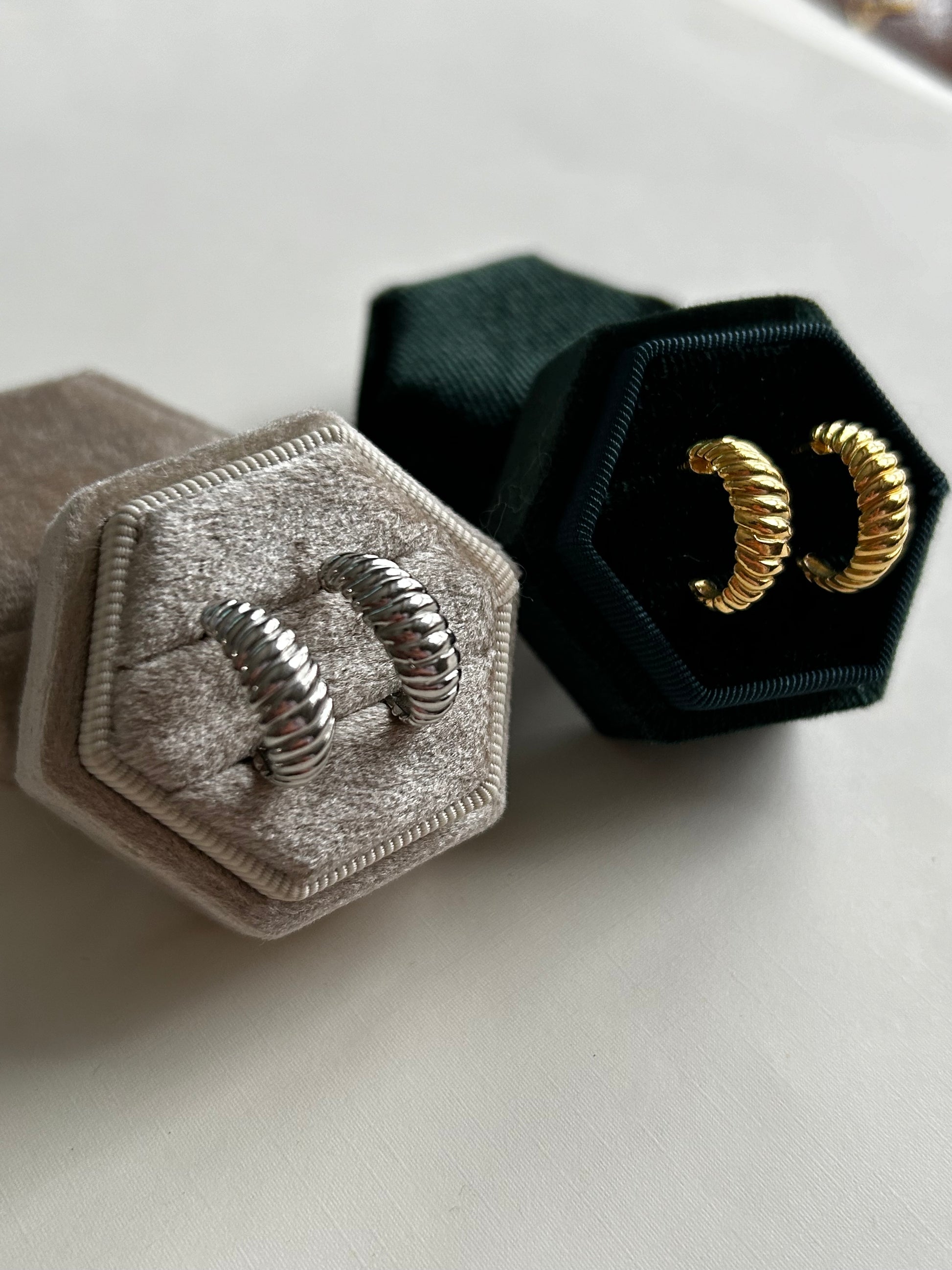 Sterling silver babes we listened ! Get excited with our newest croissant hoops, available in both sterling silver and gold vermeil. Crafted with expert precision and attention to detail, these hoops are a stylish addition to any jewelry collection.