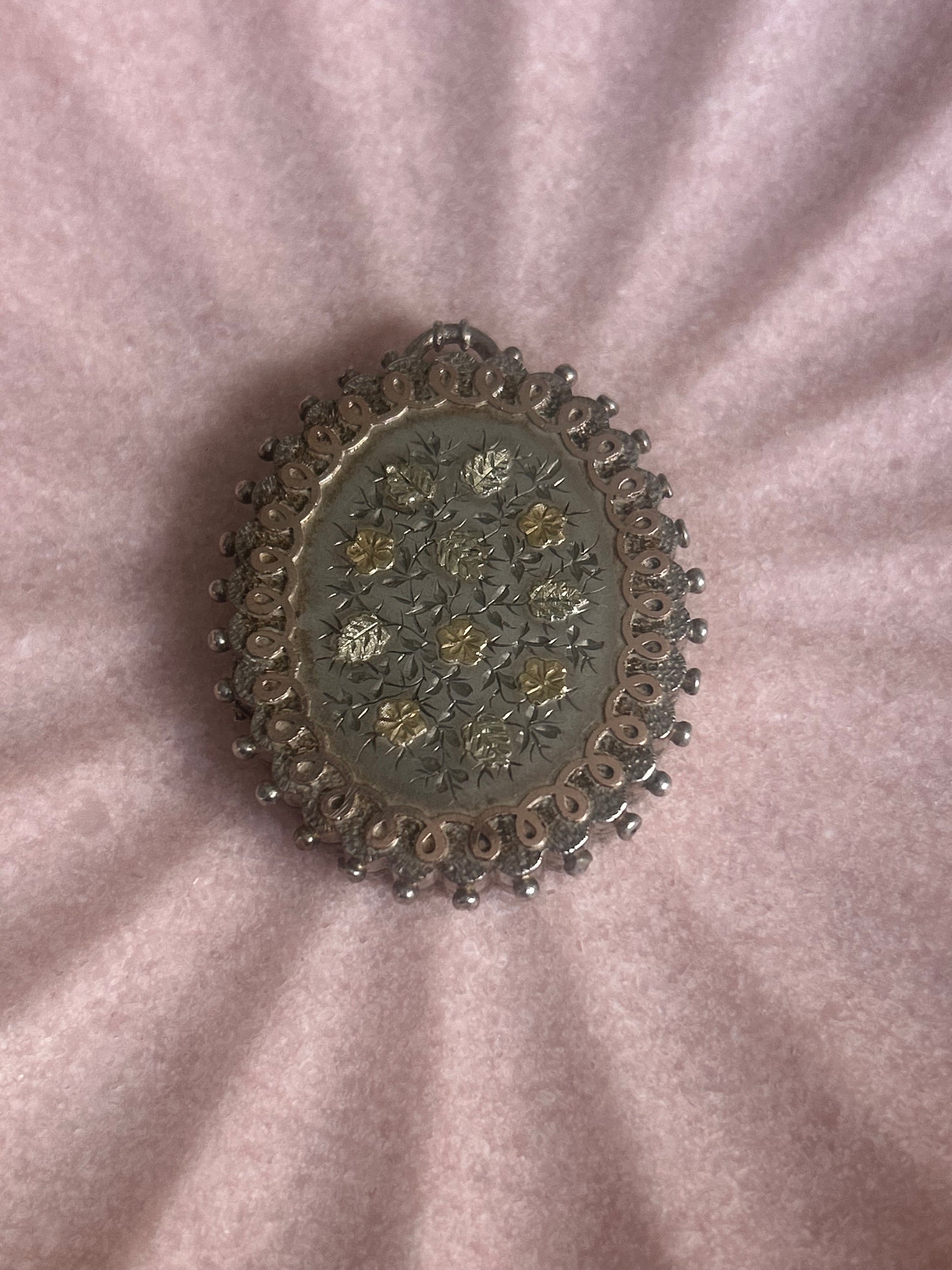 Antique sterling silver locket, fully hallmarked from the Birmingham Assay Office in England, circa late 1800s / early 1900s. Featuring a delicate floral design and a hinged compartment, this piece is a true piece of British silver history. Perfect for collectors or as a unique vintage keepsake.