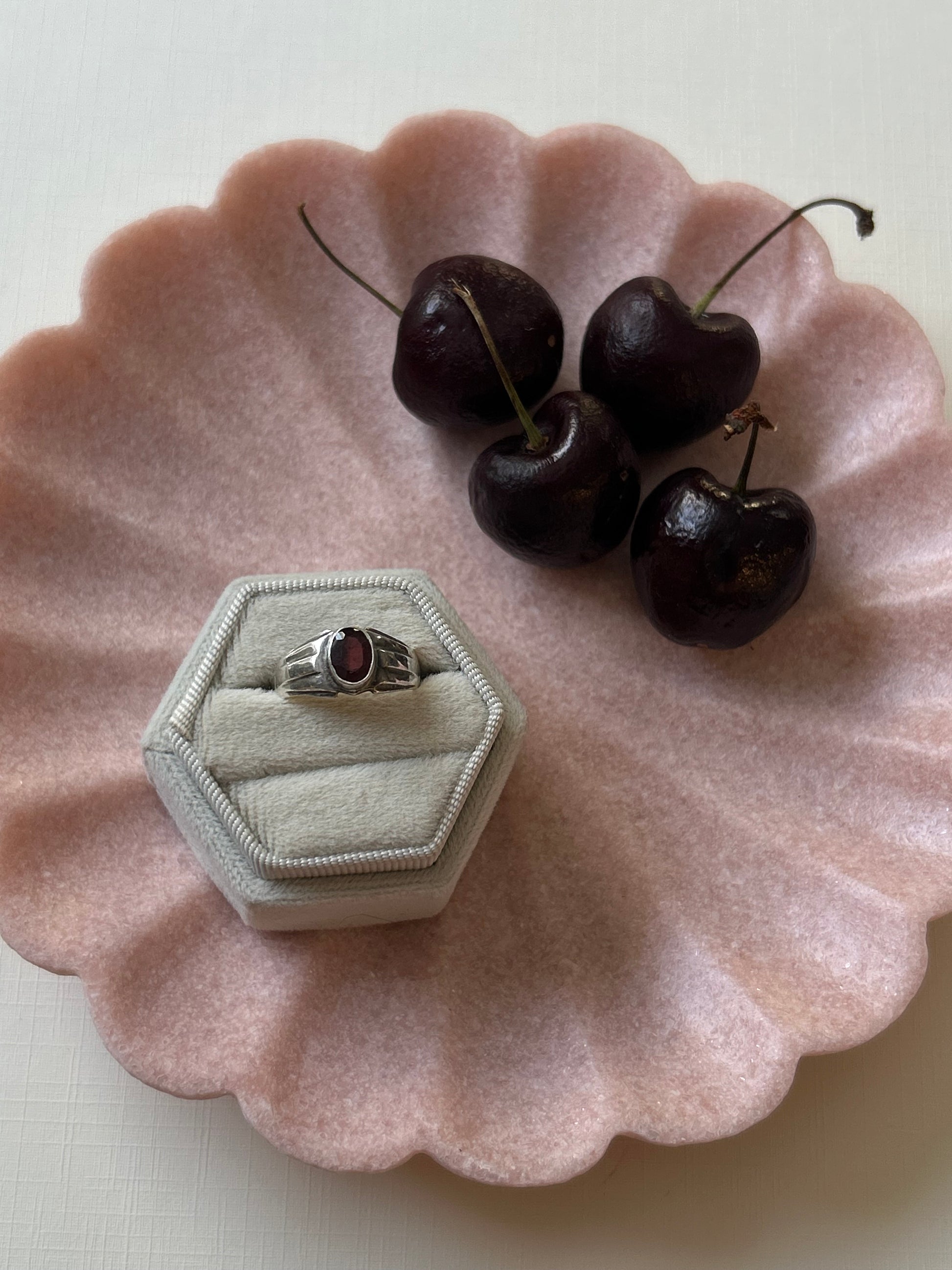 A sterling silver statement with a deep red stone that catches the light like cherry gloss. Sweet, strong, and made to be worn on repeat.