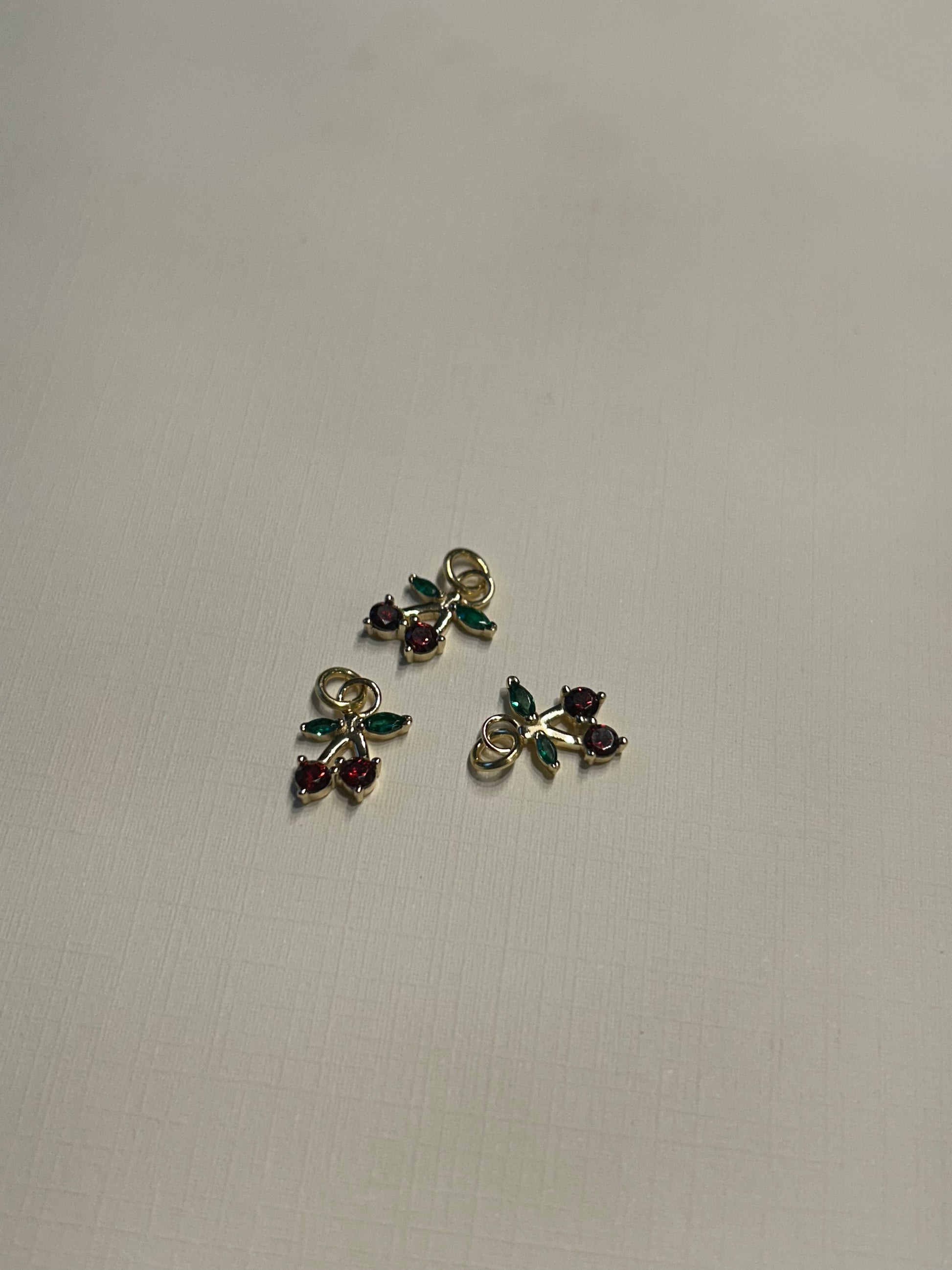 Sweet, bold, and a little nostalgic — this cherry charm is crafted in gold vermeil with created ruby-red stones and green leaves. Perfect for stacking on hoops, chains, or building your own charm stack at our charm bar