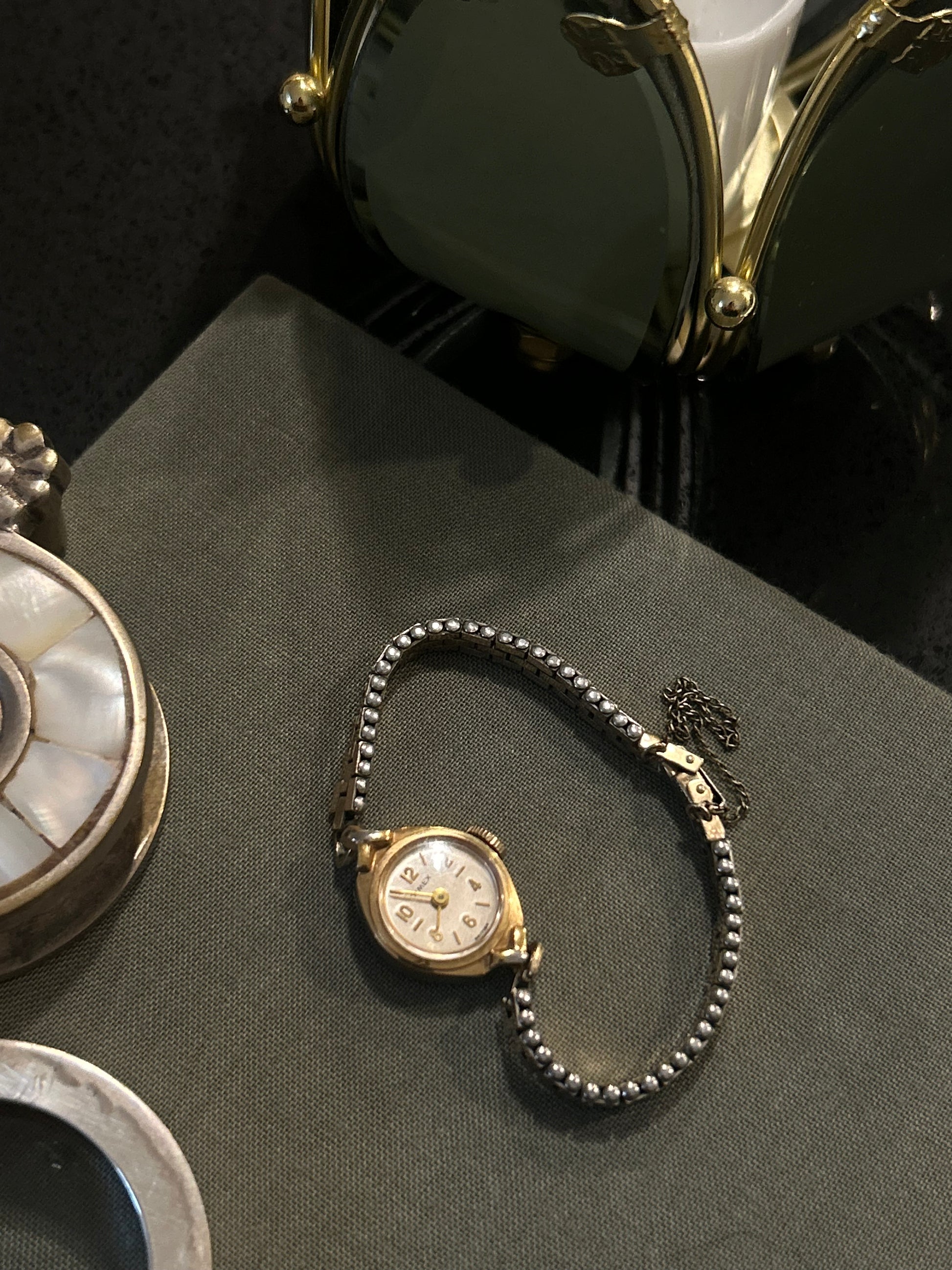 This petite mechanical watch features a hand-wound movement, built to last generations before the era of quartz. The silver-tone dial carries a soft vintage glow, its wear speaking to a life well-lived.